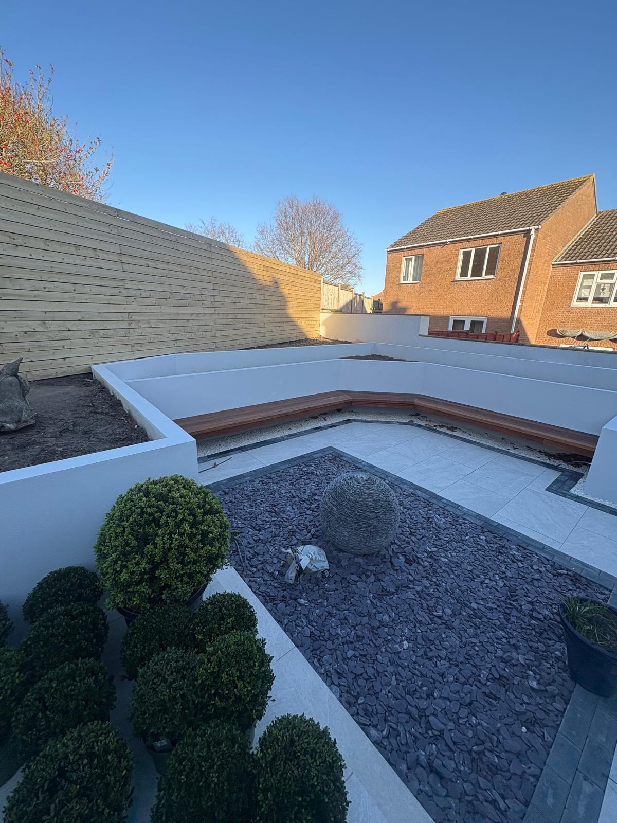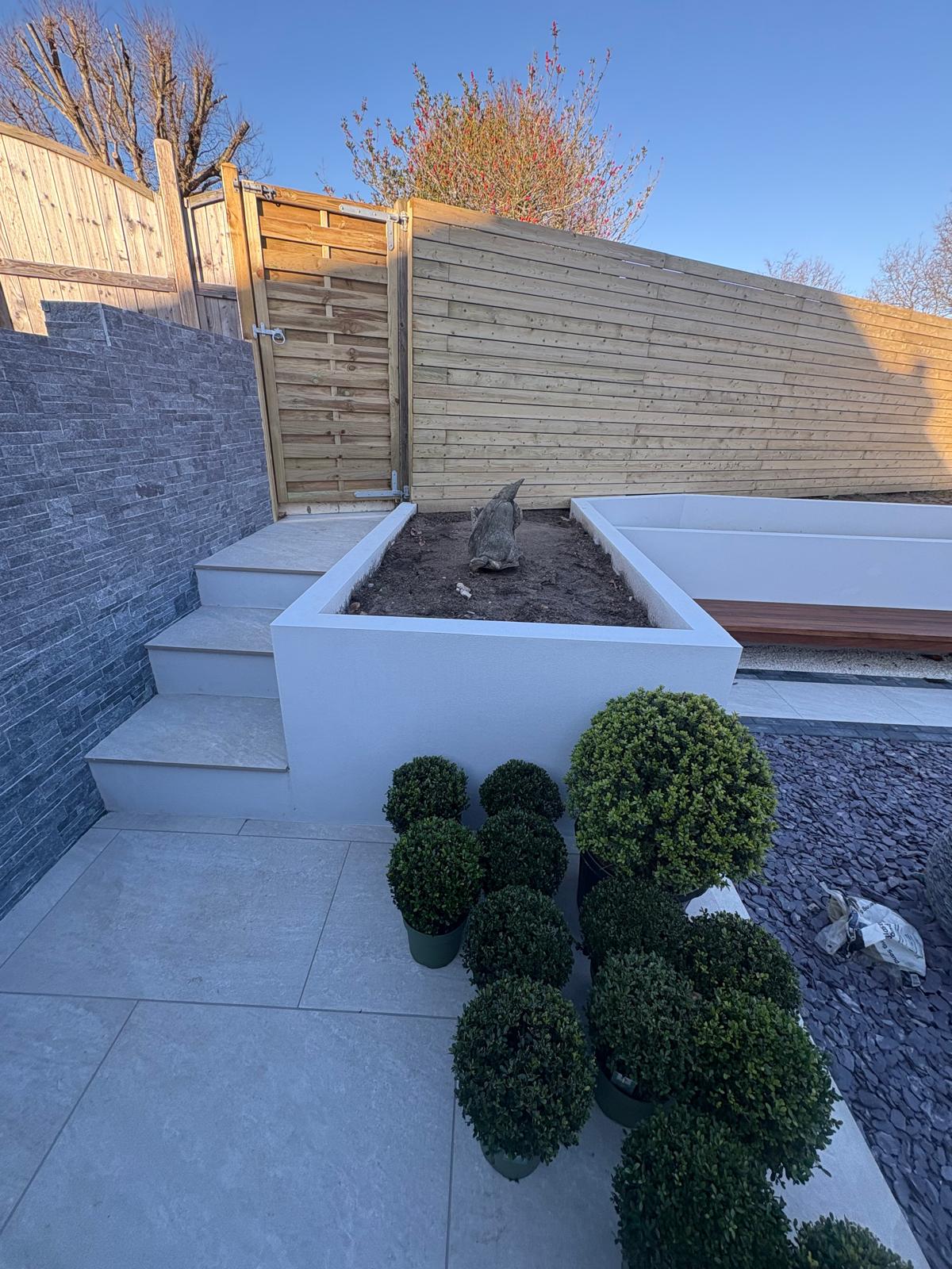 This modern garden renovation was thoughtfully designed to transform the client’s outdoor space into a stylish and functional extension of their home. Clean lines, contemporary materials, and carefully selected planting work together to create a balanced environment ideal for relaxing or entertaining. Every detail was considered throughout the build, ensuring a high-quality finish, long-lasting durability, and a seamless connection with the surrounding landscape.