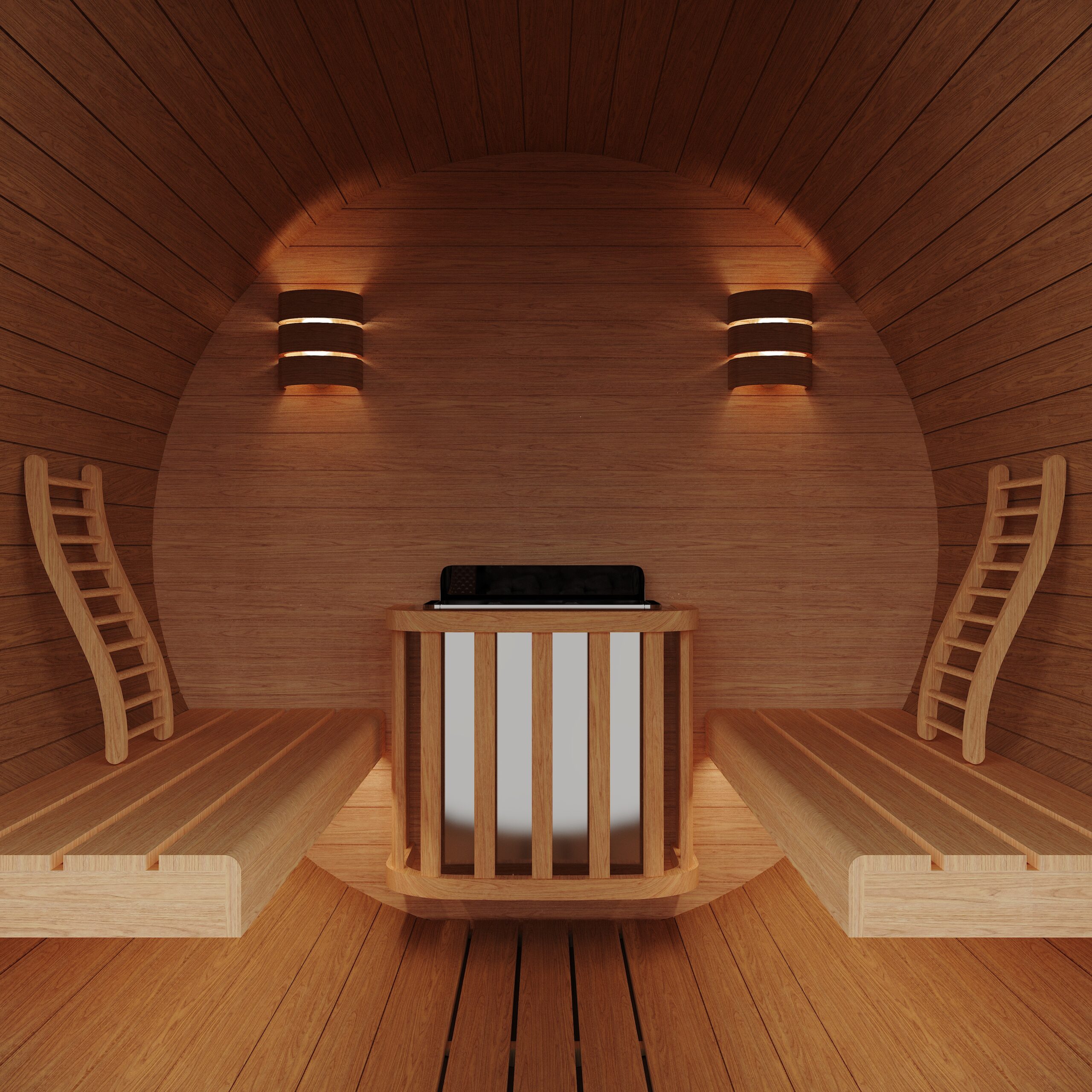 Thanks to the control unit, The Wall Black Steel can also be integrated in the bench, giving you more flexibility regarding the design of your sauna room.